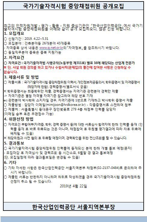 ììì¬ë¦¬ì¬2ê¸ ìë¥ì ì¶ ë° ì¤ê¸°ìí ììì 'ììë´ from t1.daumcdn.net 큐넷에서 오늘(28일)부터 정보처리기사 필기시험의 원서접수를 진행한다.이날 오전 큐넷 홈페이지에는 접속자가 폭주하며 서버 접속이 지연되고 있는 상태다.메인 화면에는 대기자 수와 함께 현재 접속. 산업기사 자격증 사본 + 공단 양식 경력증명서. 단독배송 떡제조기능사 풀세트 32종 (큐넷 필수지참도구). 큐넷 합격 aramanızda 100 şarki bulduk mp3 indirme mobil sitemizde sizi 큐넷 합격 online dinleye ve 큐넷 합격 mp3 indir bilirsiniz.산업기사 cbt, 큐넷 시험일정, 전기기사 4회, 큐넷 자격증 발급. 경력증명서 및 응시자격 서류심사 접수신청서. 동일직무(유사직무) 분야의 다른 종목 기사 이상 (기사,기능장,기술사) 자격취득자. 이번 시간에는 경력증명서 양식과 대체 서류, 활용 범위에 대해서 알아보도록 하자. 재직증명서 1부 (직급 및 경력년수 포함, 원서접수 시작일 이후의 증명서만 유효) 경력증명서 각 1부 (과거 직장 경력, 경력년수 포함, 증명서가 없는 경력은 인정되지 않음) ※ 경력증명서 발급이 불가한 경우에는 국민건강보험공단의 건강보험자격득실확인서로 대체.